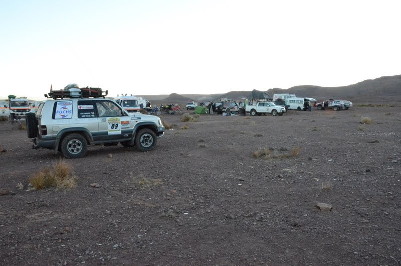 We entered Keyes in the darkness. Stopping at a hotel that looked to be close to the camp. And we got told that the camp had moved. Nobody knew where. So we ended up staying at the hotel - that is in our car at the hotel - there was, of course, no vacancies. We entered the restaurant of the hotel. There where people there who had not seen us since before Agadir. We got a spontaneous round of applause. It felt good. It felt like it was all worth it. Team FUG let us use their shower. It was magnificent - our standards have been lowered but it was just great to stand in some hot water and get a nice shave after. Thanks a lot guys.