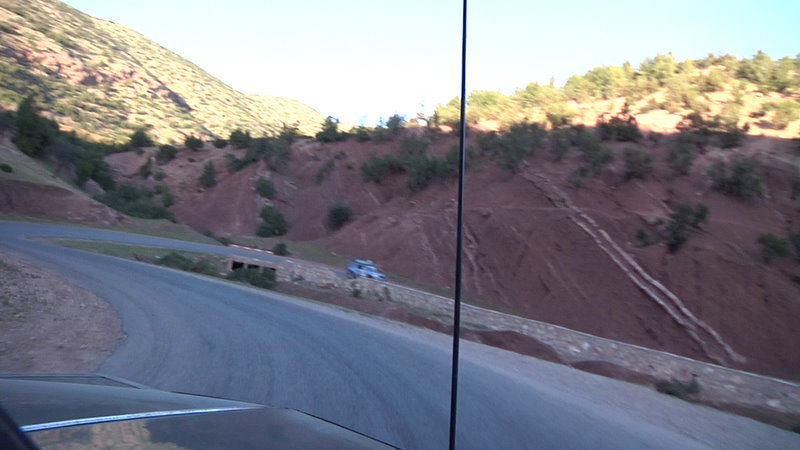 We went up into the Atlas mountains. Now the fun really started. The hearse climbing up hairpin turns like a champ. It did not have the acceleration of the Honky Tonk car, but really showed of as the little hearse that could. Well, actually it was the rather huge hearse that could - get up the narrow mountain passes. The road was not always there. Either the asphalt had been chewed away by nature making it a whole lot worse than anything we had encountered so far or it had been dug away by road workers. I got to say that I got more and more impressed by the performance of the hearse.