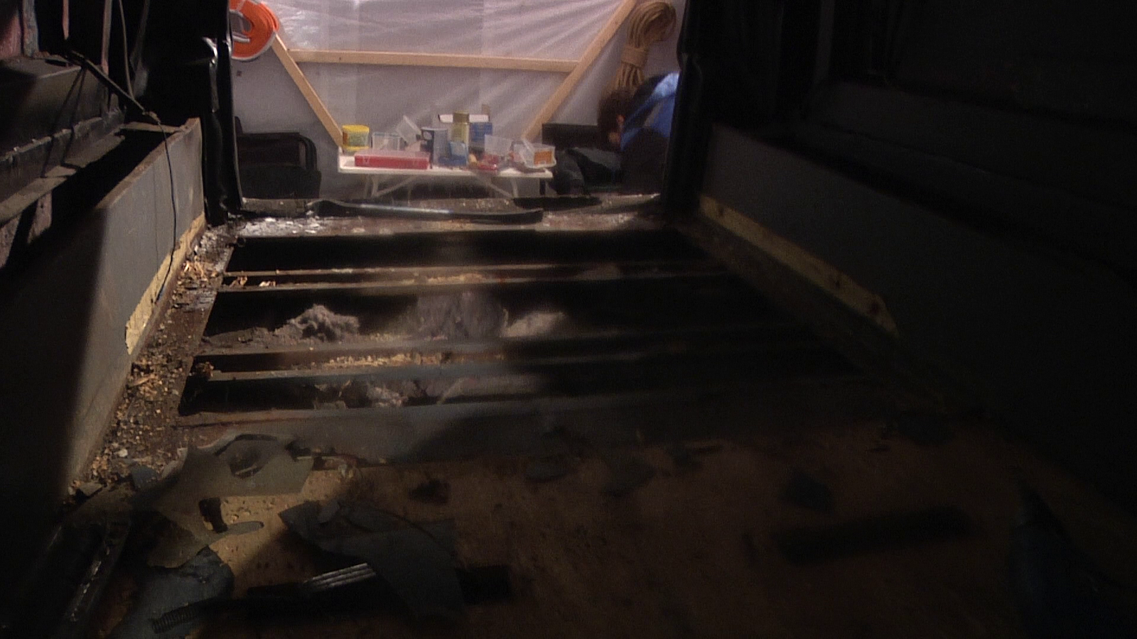 We then started tearing down the interior of the car. It put up at big fight, beeing considerable more sturdy than we thought. Wich is both bad and good. It made it harder to tear down, but we can reuse a major part of the internal frame.