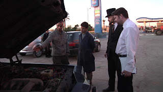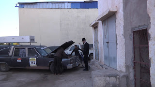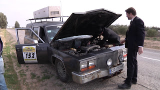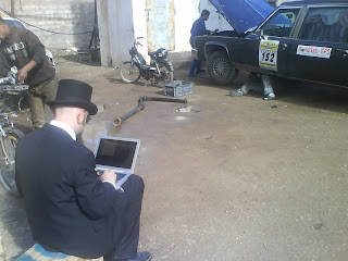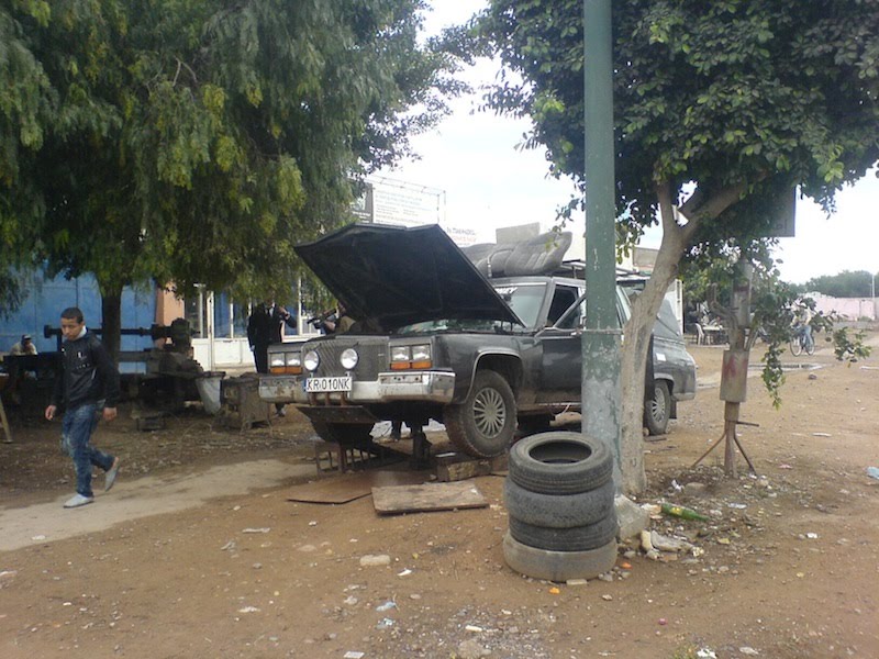 It was hard to get out of our nice and comfy beds early in the morning to go to the mechanic that was going to change our gearbox. We dropped of Kristian on the way so that he could try another attempt at mission impossible - getting sleeping mats, blankets, hot sleeping bags and/or an inflatable instant hotel.The mechanic got to work on our car and we did what we do best. Stand around in top hats and suits - watching other people work on our car. Communication is as usual a bit complicated, but using hand gestures and Pers latte-french got us both insight and confusion to the whole gearbox change process.