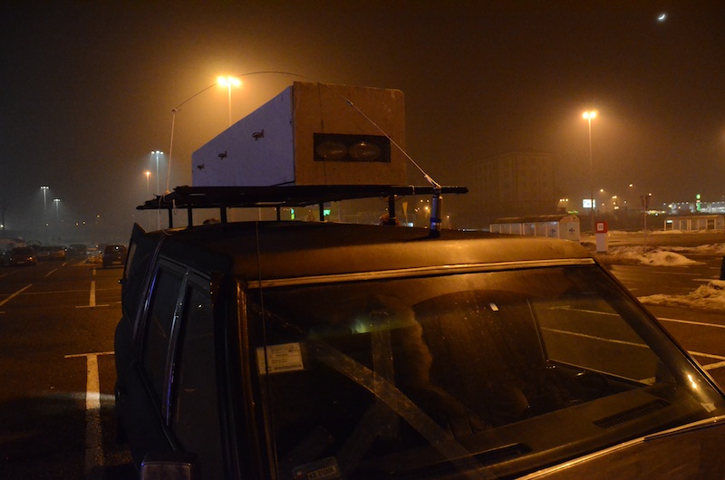 Today we took the car to a parking lot outside a Castorma (building supplies and tools and fusion reactors) to fix the last electrical and mechanical problems. One mechanical problem being the fact that we lost the keys to the padlock we locked the back door with. So. We bought an angle grinder at Castorama and hooked it up to the AC – inverter we have in the car to run power tools. Angle grinding bolts at the back of cars on a parking lot with a lot of Sunday shoppers, well, that kind of draws a bit of attention. We actually did get some work done in between explaining what we where doing and shaking hands of people wishing us ‘The wide road’ and telling us how awesome the car is.