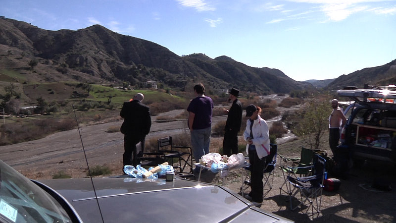 We got to camp some time after 3AM. The drive trough the mountains had taken its toll on us all. There was little time to sleep so we set up camp real quick. This was the first test-run of our tent-on-top-of-coffin-rack. That part worked out fine. Kristian was too tired to make a real bed in the car and crashed in the back seet. Me and Per got up on top of the car and went to sleep. We soon realized that it was way to cold. Our sleeping bags were just not hot enough. Per ended up retreating into the cabin of the car while I opted for an lot of extra clothes. My clothes were in my bag, which was in strapped in at the back of the car. I finally got the bag out in the darkness, but in the process I also got our table out. When I tried to force it back in a huge chunk of it broke loose. And as it fell out again the tray or beer fell down and hit something sharp - causing one of the bears to rupture and make a nice beer fountain all over the stuff we keep in the back of the car. I really could not do anything but start laughing like a mad man by my self. In the dark. Behind the car... After that I got back up into the cold tent and finally fell asleep - rather exhausted.