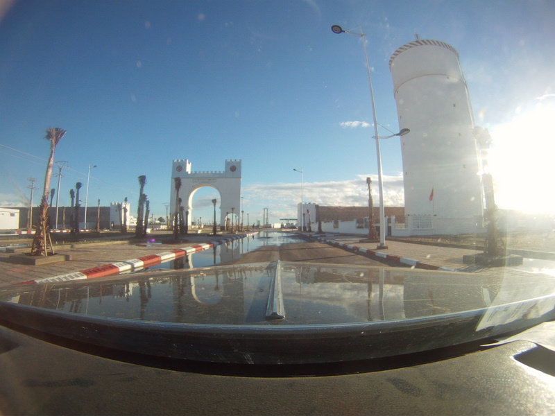 We had a border crossing to catch. We just did not know when it closed. So we ran from Agadir like bats out of hell. Well past midnight. Driving trough the night was rather uneventful. And at the light of day we where in the desert - rushing past all the small cities - deserted and not. It was quite uneventful too - just the straight road trough the desert - for miles and miles. That and checkpoints. Some where nice. Some asked for gifts. Some where highway robbery in a uniform. Pretty much as expected.