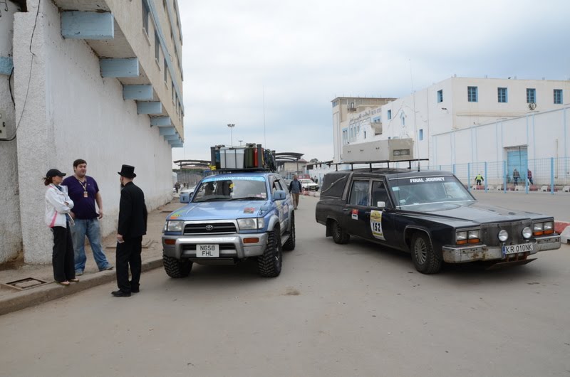 We had 18hours straight of driving - covering over 1700km - and we failed - we hit the Mauritanian border at 18:30 - and the border closed at 18-sharp. So. We got to place the car as first in the line for tomorrows crossing at 9:00. All ready to hunt for the next border crossing to Senegal - which also closes at 18. If we make that border crossing we are able catch up with the rally in Dakar and there will be much rejoicing.