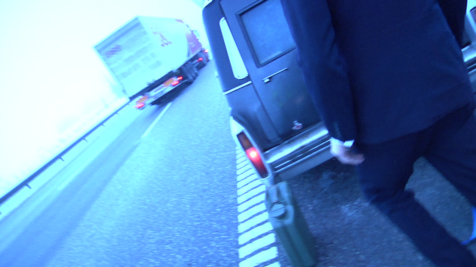 So there we were - at the all too narrow shoulder out of Diesel with trucks rushing by less then half a meter from our side. I got on a stylish yellow west and started digging out our spare jerry can - 20l of diesel. This was conveniently placed under pretty much everything. Well. Everything heavy.