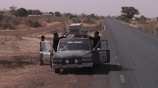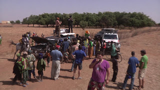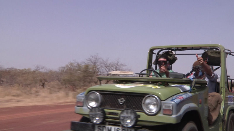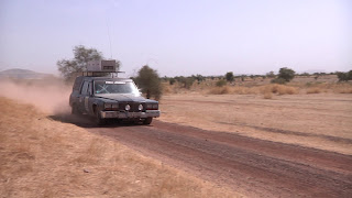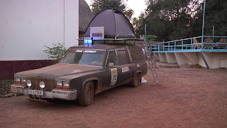 the next morning we donated the rest of our stuff. Tents, sleeping bags, sleeping mats, our large bug zapper - everything we did not need for the last stage to Bamako. The last stage made people take the top of their cars off - lowering the front windscreen. The airflow would be nice. No such luck with the hearse. We still have hour heater set to full heat - and even if we got to change the direction of the fan that blows hot air into the car it still gives off quite a lot of heat. As we were driving along I believe the highest temperature we measured in the car was 56C. That is hot, even in black suits.
