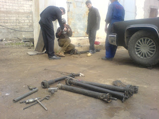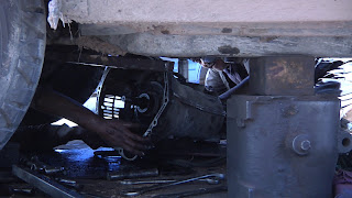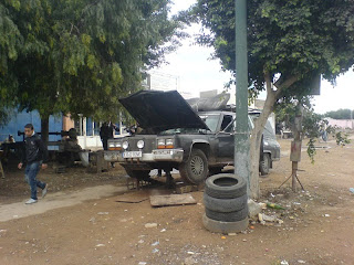 It is really interesting to see how people do their work here. The crew working on our car had it jacked up so that the wheels where barely touching the ground, but it was enough of an crawlspace for them to get out our gear box. It is a great amount of can-do-attitude and easy and small fixes to more or less complicated problems. (Technical warning) When a socket was too short to reach a nut that needed to be loosened the mechanic popped over to the welding and cutting shop next door and had the socket cut in two and welded a pipe in between the two parts - getting a long socket.