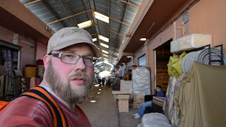 We did a little sightseeing in the area where the garage is placed. It is really a somewhat industrial area. Lots of various workshops. Walking down the street in suits and top hats makes us stick out. We are wondering in what way people view us. Are we seen as arrogant European assholes or are we just a curiosity. A small girl that waited in line at the small kiosk we bought cigarettes was staring at me, but smiled back as I smiled at her. I also came across the only white person I have seen in this part of town. I was walking down the street in my regular outfit - with the expedition sun-glasses. An outfit which make me look like something taken straight out of Mad Max - to add to the look I was wielding a green tire-iron I had just bought. The guy was sitting at a cafe - eating something. He noticed me. Stopped chewing his food and just stared at me.