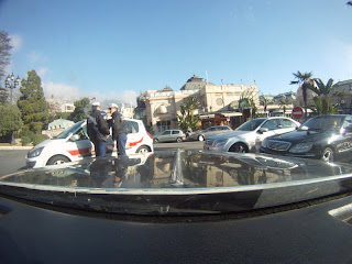 We took off from Genova in the rather early morning hours *yawn*. The first waypoint was Monaco where we wanted to do the Monaco Grand Prix circuit. We aimed to show the world what an amazing racing machine our car really is. Unfortunately we could not break the land speed record as the police came and put an end to our devious plans. We were quite innocently parked by the casino plotting the gps-coordinates (and for world domination) when they showed up. They told us that if we wanted to do any “funny stuff” we should have applied to the city months ago. We had not, so we were forced to drive off.