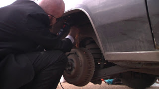 Finally the car was done - and there was time to do the test run. Per got behind the wheel and set off. We where all happy. Till he come back in a cloud of smoke and the agonizing sounds of clutch-torture. Apparently fifth gear did a bad job as a double for first gear.