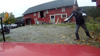 In the meantime, we've decided that we need to take the car to Norway. We need the experience of the long drive, and the packing of the car needs to bee done a bit over time. Adding to it is that Per Christopher and myself needs to get more hands on the car. But that means we need a place to work on the car in November and December. Which means we need weather protection. None of us know a garage big enough to work on the car, but some friends, Mike and Christie, offered us to put up whatever we like on their old corral, that they're not using. So this weekend Per Christopher an I started on cleaning the corral and making a tarp tent to go around the car. So, it's been a while since we last wrote here. But there has not been much to write about. The mechanic we found this summer turned out to never have time to help us with the car. So we finally pulled the plug. And found a new place to do the stuff. Now, they turn out to be a lot more reliable, and the engine change should be almost done buy now.