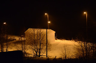 We're pretty pleased with the garage, and it looks quite sturdy. By the snowfall lately, we got done about the right time. We were out there yesterday after stocking up on stuff, and everything is covered in 10 cm of snow now.