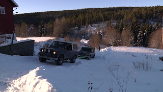 After makin all this, we called Lars, a friend of Per and Kristian, and he came with his 4x4 LandCruiser to pull us up the hill. We were quite nervous about this, the hil beeing steep. But it turned out that with the help of lars we made it on the second atempt.