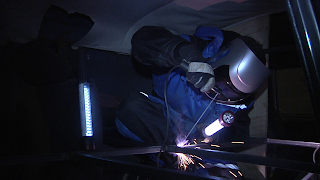So. We needed to fix this little problem. Our mechanics did not let us down. After a day of welding and angle grinding our armor plating was transformed to something that actually can get over speed bumps and hopefully keep our engine safe trough Africa. One of the mechanics commented on the construction we had made – pointing and saying in Polish “Solidna konstrukcja” – this was something also Per could understand and there where grins and giggles all around.