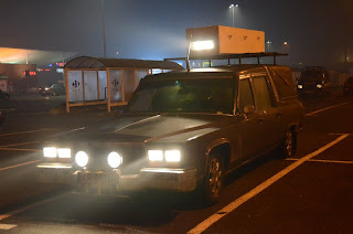 Our friends showed up in funeral outfits and sent us on our way with (fake) grieving tears in their eyes. We drove up on the podium blasting the theme to Adams Family and got asked a couple questions. The answers was something I had been rehearsing for years - so that went as smooth as broken glass. But. We were on our way. The race was on!