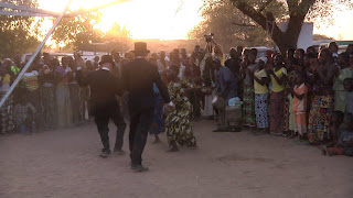 The villagers had prepared a nice party for us. With food and music. We got attention and people were impressed that we still were in suits in the hot-hot-sun. A lot of pictures were taken. The suits were quite OK - well that is until Andrew made us dance. It was a quite forced dance - but we got applause as we threw our hats up in the air and other great party tricks. The night ended in a small party in our camp.