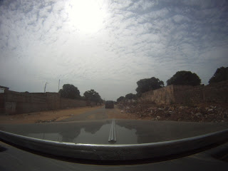 Along the way we stopped at a gas station. Of course we got swarmed with kids that wanted gifts. We really had none - saying "Cadeaux fini" did not really work. As we were about to go off and I got into the back seat they kept pointing at a bag of trash. This mostly consisted of empty water bottles, baby-wipes, wrapping paper and such. I gave our trash to the oldest looking girl there and she took it away ripped open the bag and the rest swarmed around grabbing... Stuff. I am not sure what they found in our trash that was worth it. It was surreal. Then I made the great mistake of thinking that I could leave the rest of our trash right there. I opened the car door and put it on the ground. The car got charged by bunch of kids. Crashing into each other and the car. Ripping the bag apart. Fighting over the scraps of the white man. It was heart wrenching.