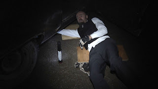 Finally lateish in the afternoon came 0-hour. Our gearbox has been changed. Oil had been filled into the new one. We were ready to transform and roll out. I got into the car. Started it up. Put it in reverse. And. Nothing. Gunning the engine did nothing either. Just the whining noise of failure. The car was simply not moving backwards. Going forwards was no problem. After a short discussion about if we could do the rest of the rally without reverse we came to the conclusion that - no - we really could not (picturing a border crossing - guns pointed at the car - a border guard shouting "BACK UP NOW OR WE WILL SHOT"... not a good thing). We needed another gearbox. It was getting dark fast and since the mechanic we use operate out on the ground in an ally there was no light. The quest for a functioning gearbox had to continue the next day. There would be another painful night in a hotel-bed and an agonizing hot shower the next day. Have updated with pictures for all the postings that had none.