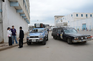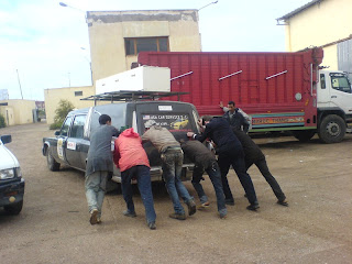 We all linked randomly up at a petrol-station outside of Agadir, where we sadly decided that our teams had to split up. The Honky Tonks headed south for the rest of the stage. Some shipwreck at the beach and other goodies. While we went on hunting for a gearbox. This was an extremely hard task. Per is the only one speaking any French - and he is quite capable of ordering caffe lattes, but to explain that an gear box needs to be changed... (Not change the oil, not change for an manual, no it is not electronic, yes it is automatic... etc). Chaos. We met a lot of nice people that tried to help us out. A big thanks to them all. Specially the ones that offered their english speaking services to us like Raehid - who got our card and hopefully will read this blog entry. :)