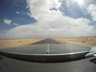 But. We were quite surprised how smooth the crossing had gone. And we were laughing as the border guard explained to us the concept of potholes. "Yes, yes, we know that there are potholes." We kept that in mind for about 10 seconds. The roads were straight and smooth and traffic was non existent -our deathmobile cruised along at 130. Then. The mother of all potholes. There was no going around - there was no breaking - there was just a loud crashing and grinding sound that shook the very core of our being. We stopped and expected carnage under the car. But. Nothing. Absolutely nothing had happened to the car at all. Our bash-plate saved the day. As it did time and time again that day. Now let me tell you about potholes in Mauritania - normally a pothole is just a hole in the road. In Mauritania you have nice straight roads of surprisingly good asphalt. The surprise is even greater when the road seizes to exist for 2-3m and instead of the road there is a 30-40cm dip. The first pothole we got to claimed at least two cars from our rally. Amongst them a 4x4 mobile home - a car laden with equipment and gear. We commented on it in camp earlier - saying that this was the way to do the rally - travel in style.