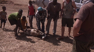 The price for goat got settled. It got butchered there and then and carried over to our car - where we had pulled out a body bag (the body bag had came with the car). The bag was really made for humans and even if the goat fit - the bag got punctured by the goats horn. We put the bag into the coffin and drove off. Finally the coffin had gotten to be used for something it was not really meant to be used for.